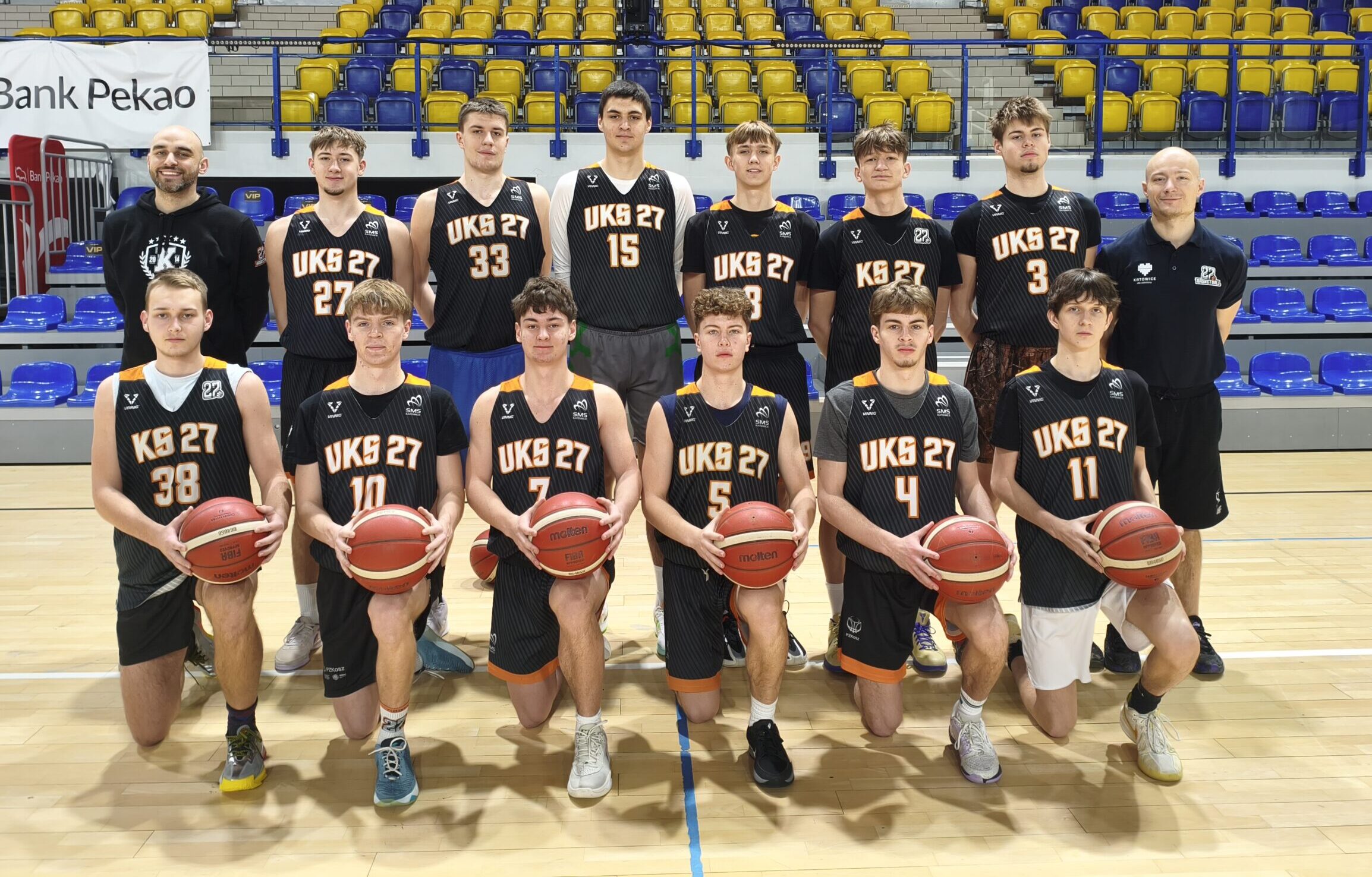 Jednak nie patrzymy na tą drużynę przez pryzmat braku awansu, a kilku świetnych sezonów, które Panowie rozegrali w naszych barwach, dostarczając Wam i nam mnóstwa emocji, radości oraz nie jednej nerwowej końcówki meczu. Doskonale pamiętamy turnieje Ćwierćfinałowe Mistrzostw Polski rok i dwa lata temu, kiedy tak niewiele zabrakło do awansu. Turnieje centralnej ligi juniorów czy ich debiuty na seniorskich parkietach na poziomie 3 i 2 ligi. Mało tego, w tej ekipie mamy 3 wychowanków, którzy przeszli przez wszystkie nasze etapy szkolenia – Mikołaj, Taras i Staszek od podstawówki trenują w 27, więc pamiętamy ich jeszcze z wcześniejszych rozgrywek, a teraz przed nimi kolejny etap. W zespole mamy też, można powiedzieć, etatowego reprezentanta Polski – Bartka Folgę, który choć młodszy to stanowił o trzonie drużyny. Każdy z tej piętnastki dał z siebie 100% w tym sezonie. A nasza najstarsza piątka zrobiła ogromny postęp w trakcie tych 4 lat nauki w Szkole Mistrzostwa Sportowego w Katowicach, łącząc naukę z rozwojem kariery, która mamy nadzieję, nie zakończy się w tym sezonie. Dla nich jest to koniec gry w rozgrywkach młodzieżowej i szansa na rozpoczęcie kariery w zespołach seniorskich. Warto też zaznaczyć, że cały zespół tworzy również część składu w drugoligowym zespole AZS AWF Miners Katowice i ich sezon wciąż trwa, co jest okazją do udowodnienia, że parkiet na tym poziomie jest też dla nich!